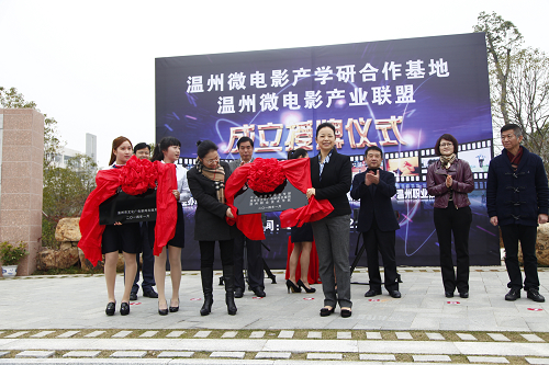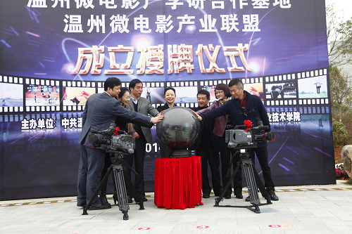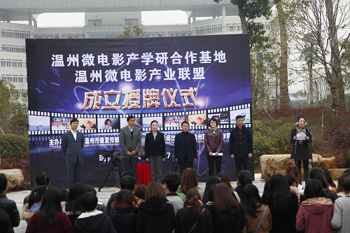 2月27日上午,由中共温州市委宣传部、温州市文化广电新闻出版局和温州职业技术学院共同主办的温州微电影产学研合作基地暨温州微电影产业联盟成立授牌仪式在我院隆重举行。中共温州市委常委、宣传部部长胡剑瑾,温州市文化广电新闻出版局党委书记吴东,学院党委书记陈光天、副院长王向红等领导,以及政府相关部门和来自温州、杭州的影视拍摄制作企业的负责人参加了本次仪式。