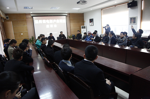 仪式结束后,在人文传播系会议室举行了温州微电影产业联盟座谈会。人文传播系主任田正在座谈会上表示人文传播系将大力配合温州微电影产业联盟,为温州微电影产业培养真正需要与适用的人才,同时希望加强与微电影产业的日常联系与合作,真正做到产学研互赢互利。与会的微电影联盟会员负责人也积极建言献策,发表了各自对于温州微电影产业发展的看法及建议。座谈会气氛热烈而融洽。此外,与会的领导和温州微电影联盟会员还参观了我院校园实训基地。他们对我院实训基地的基地建设、设施设备、学生面貌都给予了很高的评价。