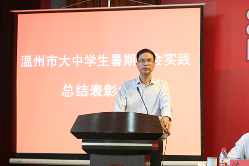 10月31日下午,2014年温州市大中学生暑期社会实践总结表彰大会在我院树人堂隆重举行。来自各高校、县(市、区)和市直学校的师生代表近600人参加表彰大会。市委常委、副市长陈浩出席大会并讲话,温州职业技术学院院长丁金昌、团市委书记王忠宝、市文明办副主任丁柏强、市教育局党委委员、纪检组长蔡亚里、温州职业技术学院副院长王向红出席会议,会议由团市委副书记沈醒主持。